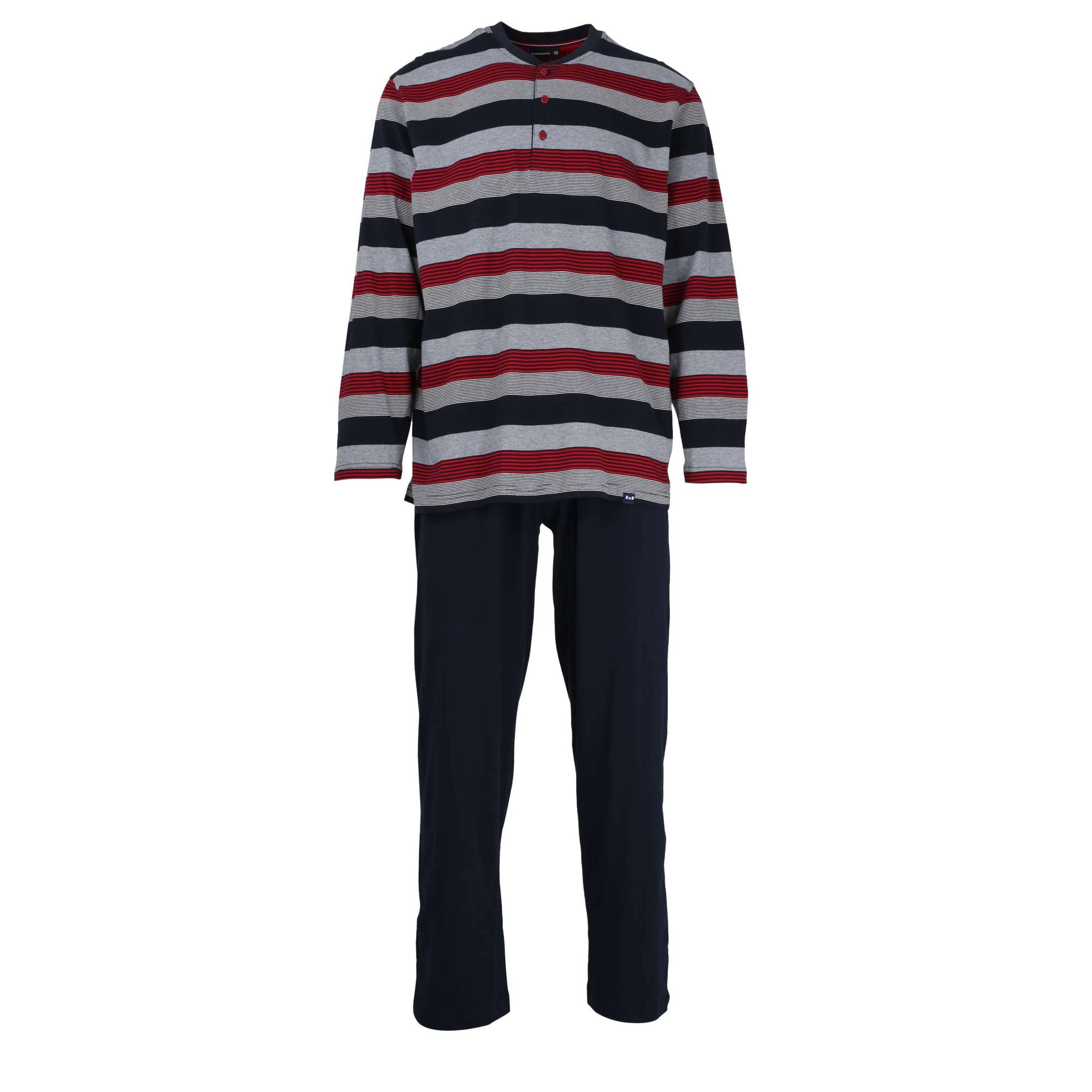 Hosszú ujjú, hosszú nadrágos pamut férfi pizsama nagy méretben.